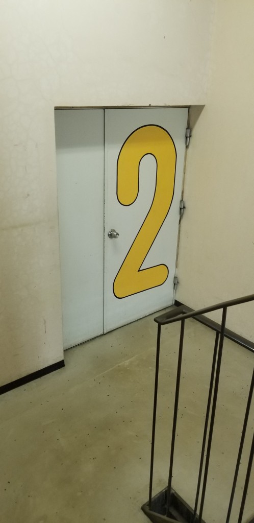 1号館2Fに,卒研室があります。目印は黄色の扉です。