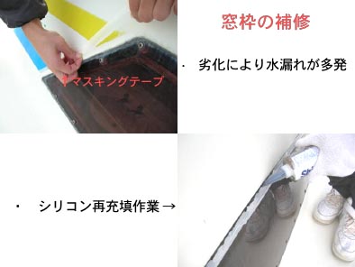 窓の周囲から水漏れがあったのでシリコンでシールをやり直しました。